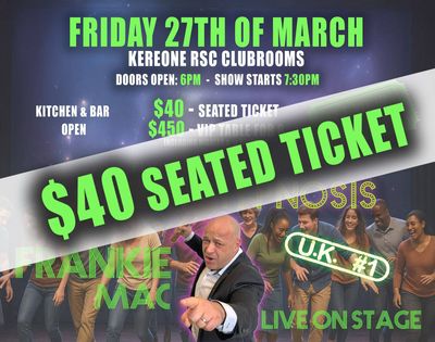 Enjoy a seated ticket for an entertaining night of comedy and laughter with the one and only Frankie Mac β Hypnotist Show.